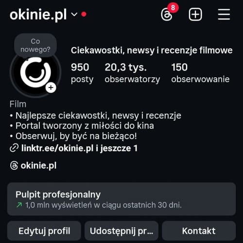 Obecnie rozwijamy nasze treści w mediach społecznościowych i pracujemy nad uruchomieniem strony internetowej, z ambitnym celem, by stać się jednym z największych portali piszących o kinie w Polsce.
